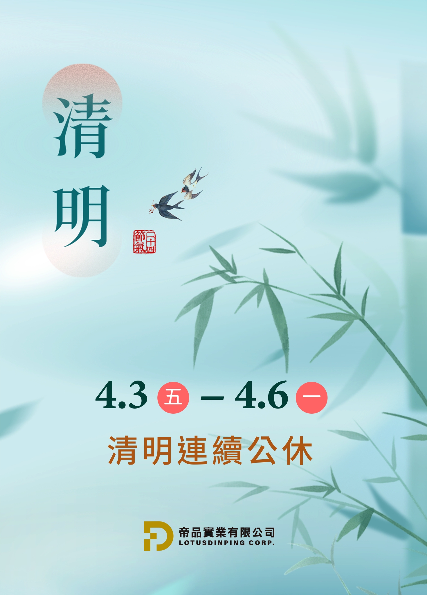 本門市將於 2026/4/3(五)~ 4/6(一)清明連假公休四日,期間不對外營業,請大家不要白跑一趟